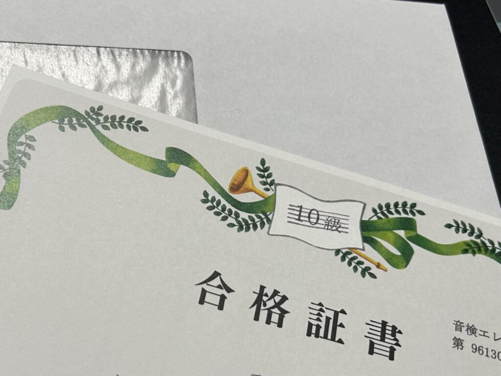 そして、エレクトーングレード10級を合格した生徒さんには、合格証書も合わせて、お渡ししました。優秀な成績で、受験級以上の学習範囲の力が身についているという Sランクでした。